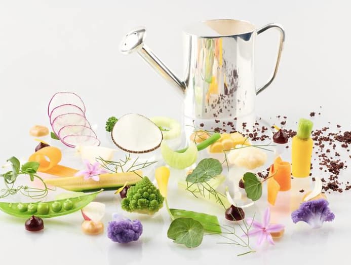 Similar all his other tasting menus, the plant-based one is anchored by the season's best ingredients. Diners might discover the likes of "irish potato, seaweed and soil", a silky mash served with crispy potato skin and a dusting of chocolate soil, or grilled aubergine glazed with sanbaiju vinegar and accompanied by a mushroom and kombu broth.